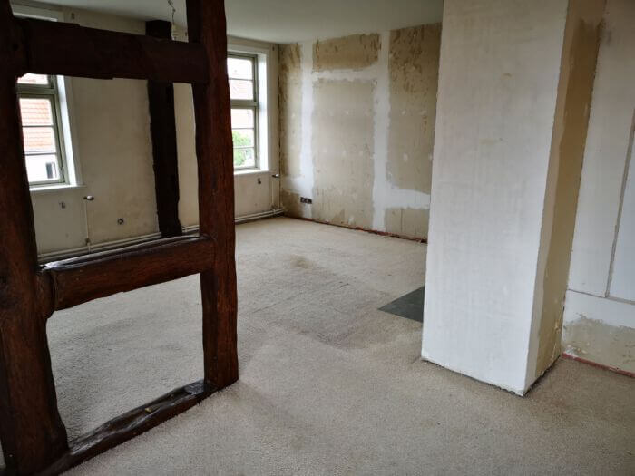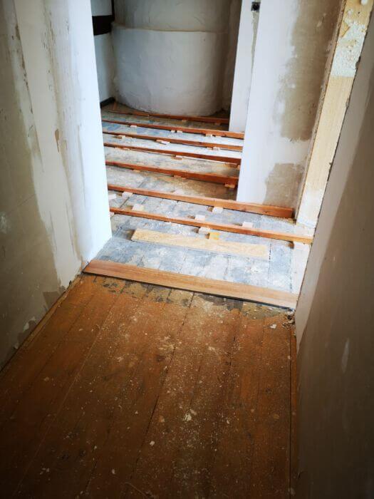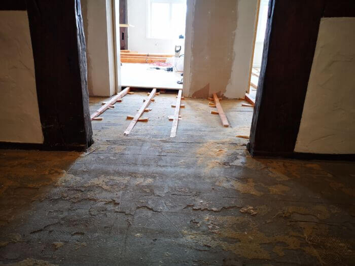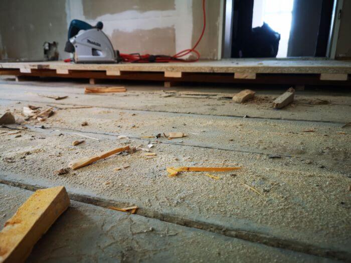 Alte Böden entfernen und ausgleichen der Dielen.